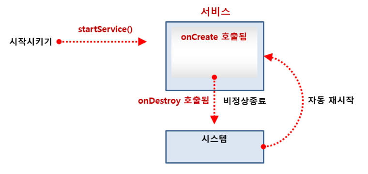 서비스가 자동으로 재시작되게 하는 것이 일반적이다 보니 앱이 실행된 후에 startService 메소드를 이용해 서비스를 시작시키기만 하면 더 이상 startService 메소드를 호출할 일이 없지 않을까요?