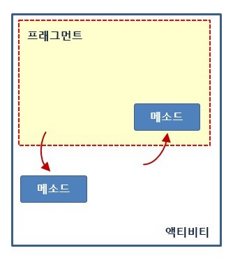 프래그먼트에서 액티비티의 메소드를 호출하거나 액티비티에서 프래그먼트의 메소드를 호출하면 프래그먼트와 액티비티 간에 필요한 데이터를 전달하거나 필요한 기능을 수행하도록 할 수 있습니다.