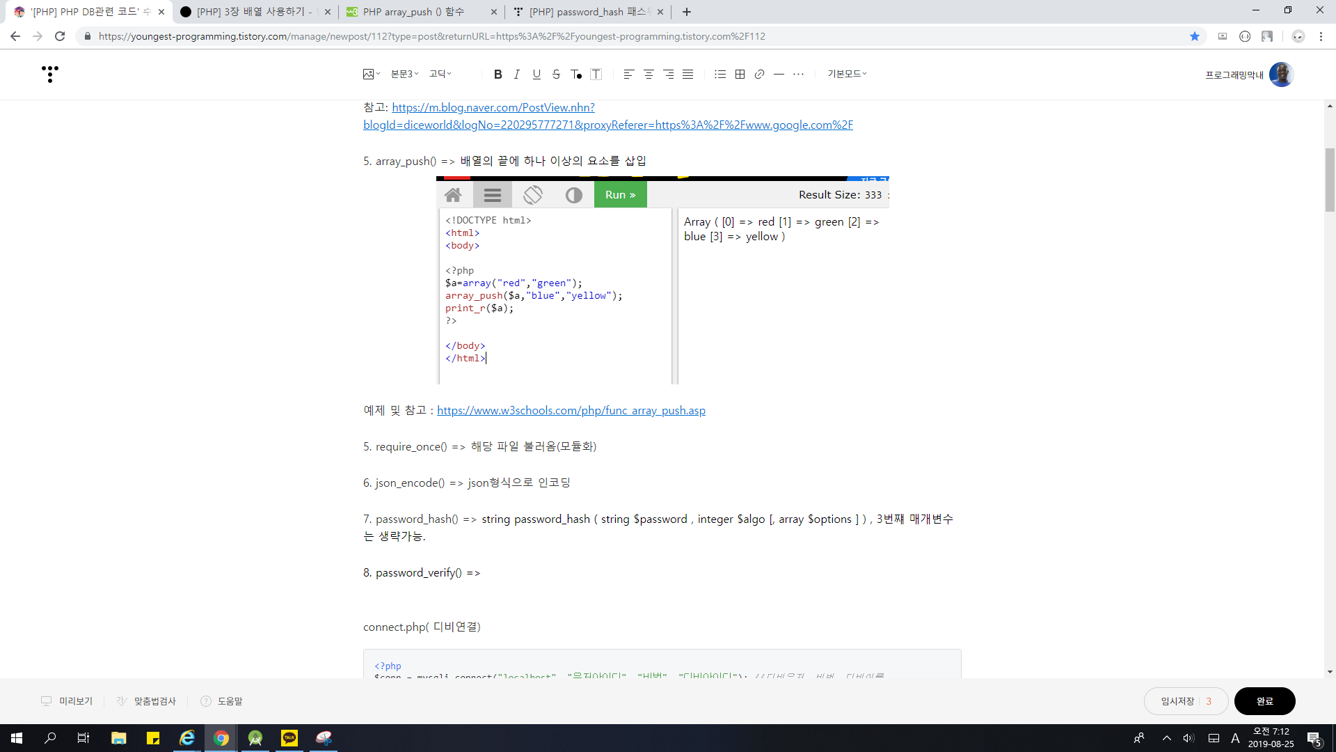 7. password_hash() => string password_hash ( string $password , integer $algo [, array $options ] ) , 3번쨰 매개변수는 생략가능.