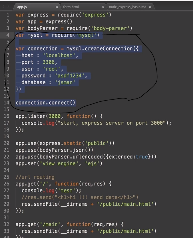 데이터베이스 연결 (참고 => 프로젝트에 mysql이 설치된 상태이고 jsman데이터베이스에 email컬럼을 가진 user테이블을 만들어둔 상태다)