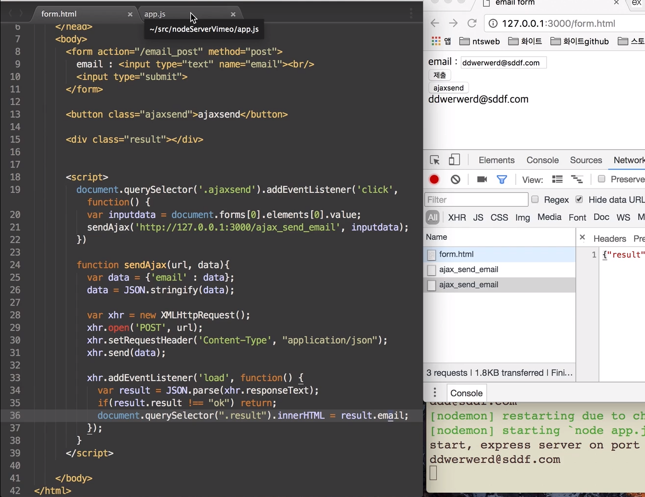 res.send("<h3>hello " +req.body.email + "</h1>") //화면에 출력