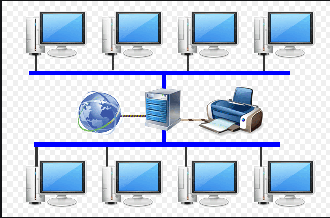 => 데이터 통신으로 컴퓨터가 가진 리소스를 서로 주고받음으로써 공유한다. 위의 그림으로 예를들면 맨 왼쪽위의 컴퓨터를 1번이라 칭하고 1번 컴퓨터가 파일이나 프린터기를 가졌다고 가정하면 다른 컴퓨터가 1번 컴퓨터와 통신을하여 1번 컴퓨터가 가진 리소스인 파일이나 프린터기등을 공유하여 서로주고받듯이 사용할 수 있다.
