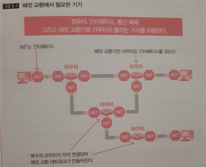 그림을 보면 알다시피 컴퓨터, 인터페이스, 통신 매체, 라우터로 컴퓨터로 패킷교환 네트워크는 이루어져 있다.