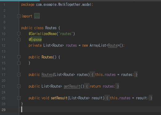 Routes 클래스이다. Routes객체의 리스트를 갖고있다.