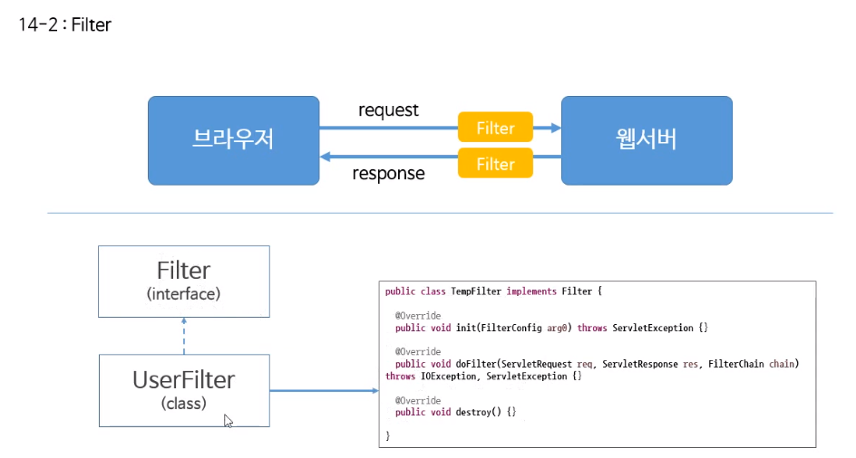 Filter를 상속한 클래스를 생성했고 setEncoding을 해준다.