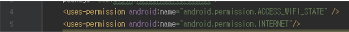 안드로이드에서 manifest에 다음과 같이 접근권한을 꼭 추가해줘야한다.