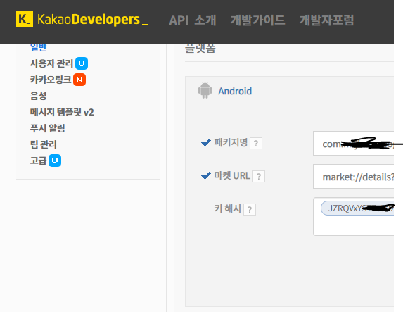 카카오 API도 해시키를 추가해주면 되는데 조금 다르다.