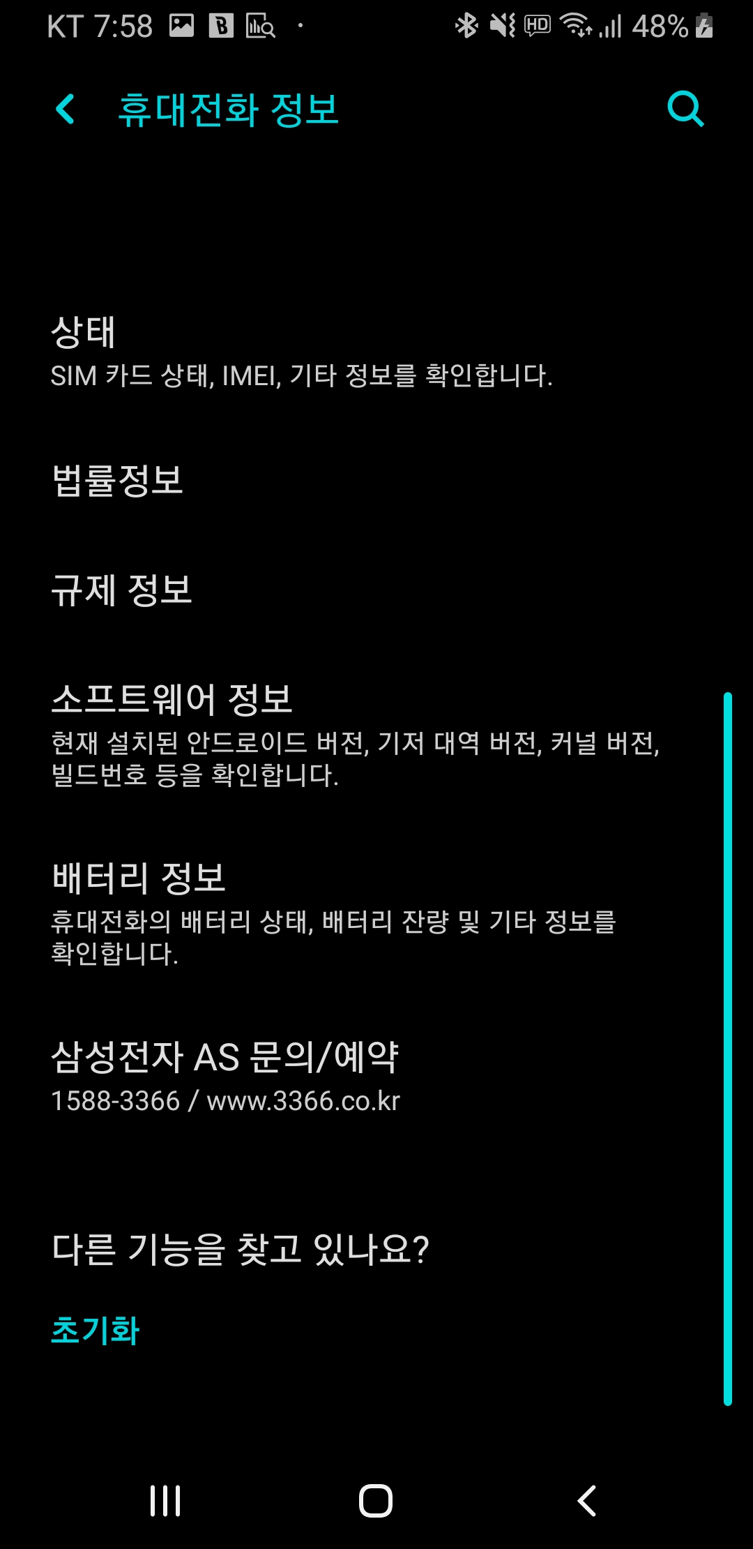 1. 설정에 들어가서 휴대전화 정보를 누른다. (현재 고친 뒤라 개발자 옵션이 떠있다. 원래 안떠있는 상태였다... )