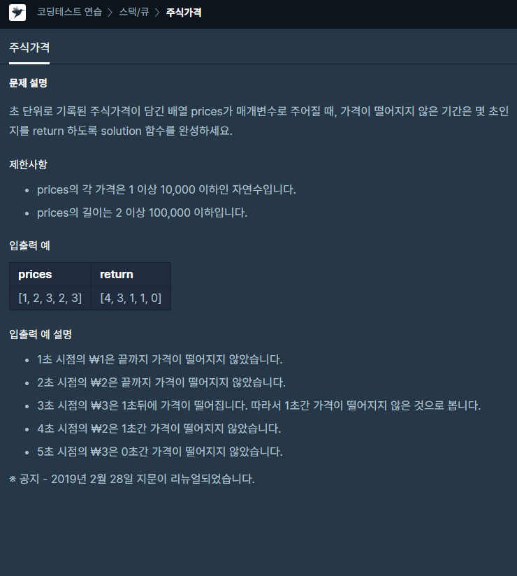 코딩테스트 연습 - 주식가격 | 프로그래머스