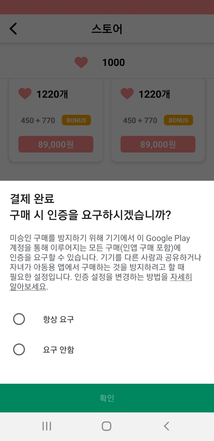 이전에 알파버전 출시 후 인앱결제 테스트 잘 동작함을 확인. 사용법도 잘 나오고 어렵지 않다.