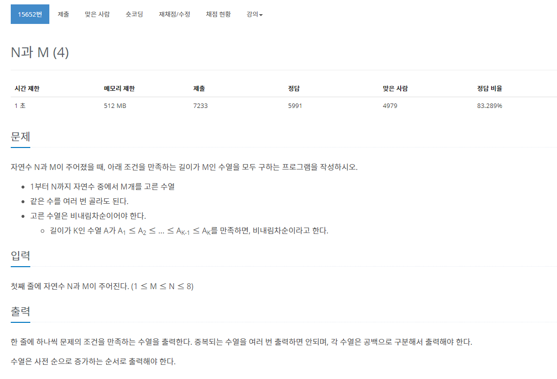 N과 M 시리즈의 마지막 문제를 풀었습니다.