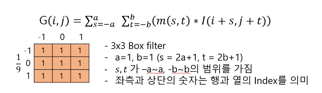 # 𝑥 :−𝑏~𝑏 범위의 Kernel에서의 x좌표(열) , 𝑦 :−𝑎~𝑎 범위의 Kernel에서의 y좌표(행)