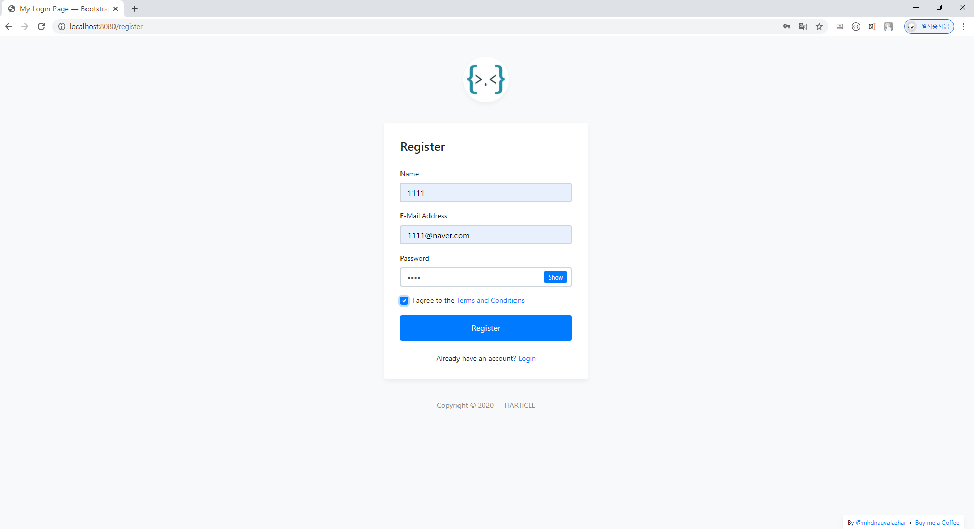 스프링부트에서는 회원가입할때 스프링 시큐리티라고 보안관련 암호화하는 방법을 사용하나보다. 읽어보긴 했지만 적용하기엔 저같은 초심자한텐 무리이므로 나중에 해보도록 하겠습니다.