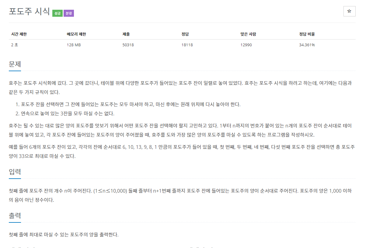 https://www.acmicpc.net/problem/2156