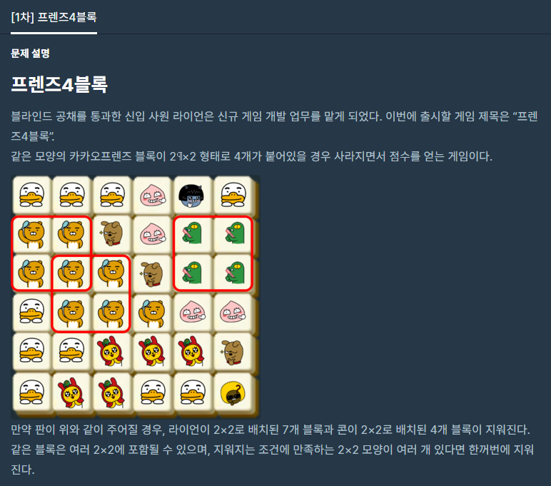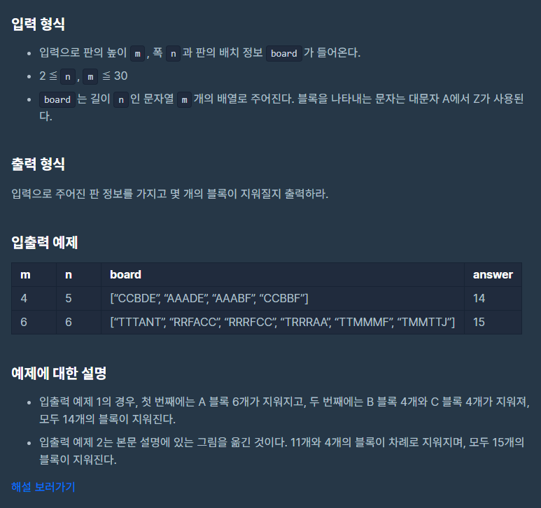 프로그래머스 프렌즈4 블록 문제를 풀어봤습니다. ㅎㅎ
