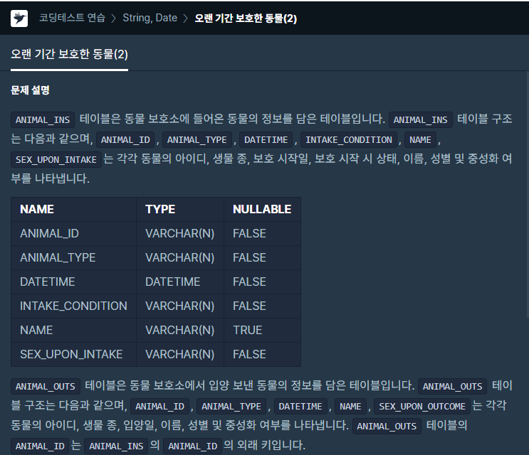 [SQL] 프로그래머스 오랜 기간 보호한 동물(2) (String, Date)(날짜차이) 본문