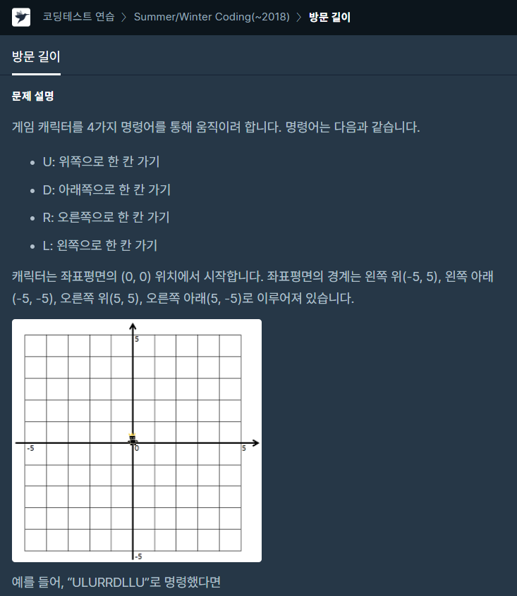 프로그래머스 LEVEL3 의 방문 길이 문제를 풀어봤습니다 ㅎㅎ