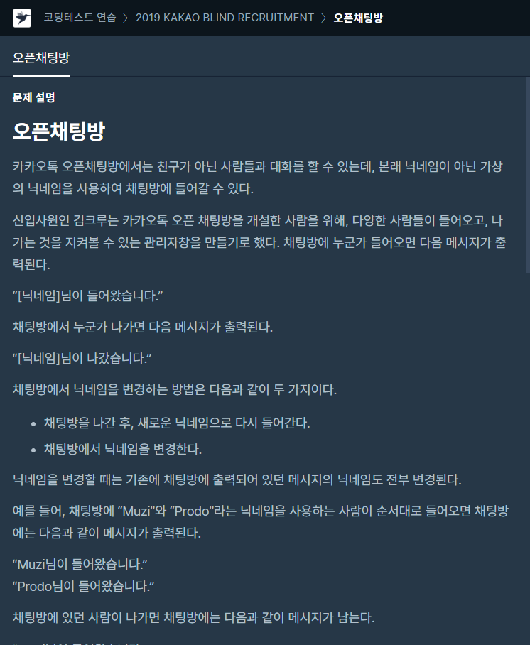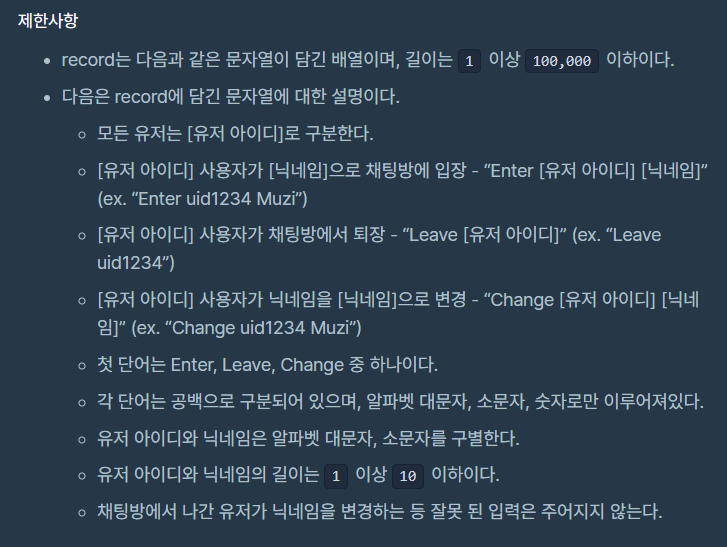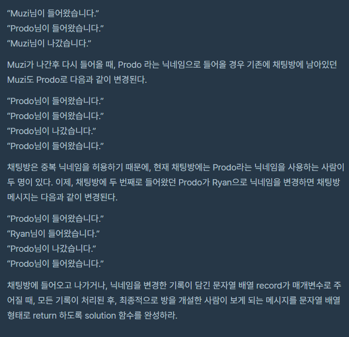 프로그래머스 LEVEL2 문제 오픈채팅방을 풀어봤습니다. ㅎㅎ