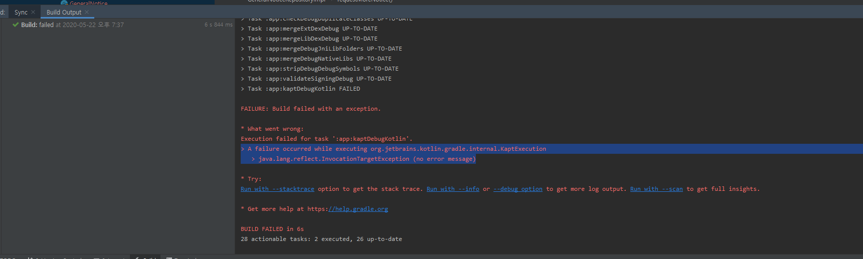 [안드로이드] * What went wrong:Execution failed for task ':app:kaptDebugKotlin'.> A fail