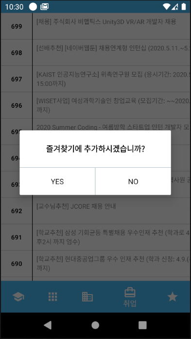 추가로 위와 코드에서 하나의 네, 아니요 다이얼로그 프래그먼트를 재활용하기 위해 질문을 매개변수로 받아 세팅하는 것을 추가한 코드입니다.