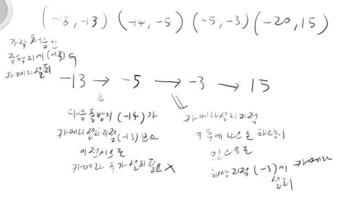 프로그래머스 LEVEL3 의 단속카메라 문제를 풀어봤습니다. ㅎㅎ
