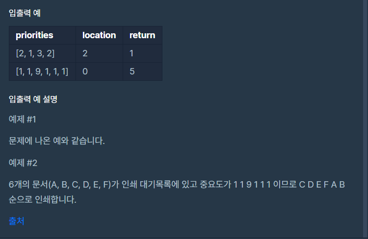 프로그래머스 LEVEL2 의 프린터 문제를 풀어봤습니다. ㅎㅎ