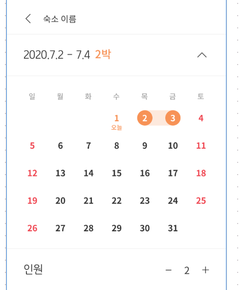 먼저 제가 구현해야할 달력은 다음과 같았는데요. 시간이 부족하여 라이브러리를 사용하게 되었습니다 ㅠㅠ 달력 라이브러리를 커스텀하여 사용하기도 빡세더라고요. 저도 아직 완벽하게 파악은 못하고 먼저 포스팅 중에 있습니다.