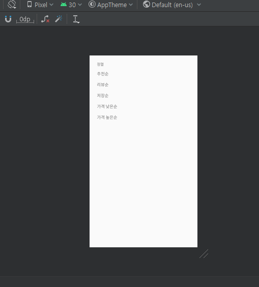 android:text="가격 낮은순"