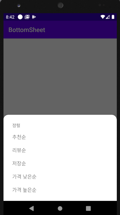 본 프로젝트 전에 적용하기 전 샘플 프로젝트로 잘 되나 바텀시트다이얼로그를 테스트해봤습니다. ㅎㅎ