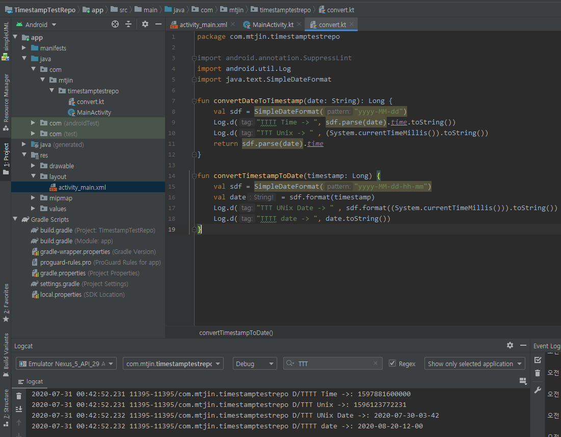 [안드로이드] Android Kotlin Convert timestamp to Date , Date to timestamp Test (코틀린 타임스탬프 날짜 변환 테스트) , Android DatePickerDialog disable past date