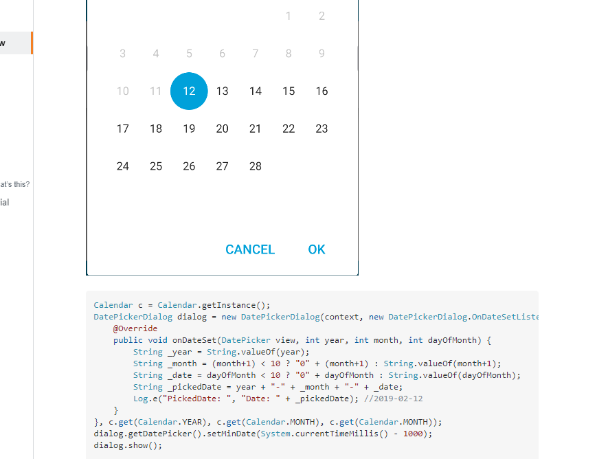 그리고 안드로이드 날짜 선택 다이얼로그에서 오늘 이전의 날짜들은 선택을 막기 위한 구현 방법도 추가로 포스팅합니다.