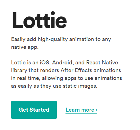Easily add high-quality animation to any native app. Lottie is an iOS, Android, and React Native library that renders After Effects animations in real time, allowing apps to use animations as easily as they use static images.