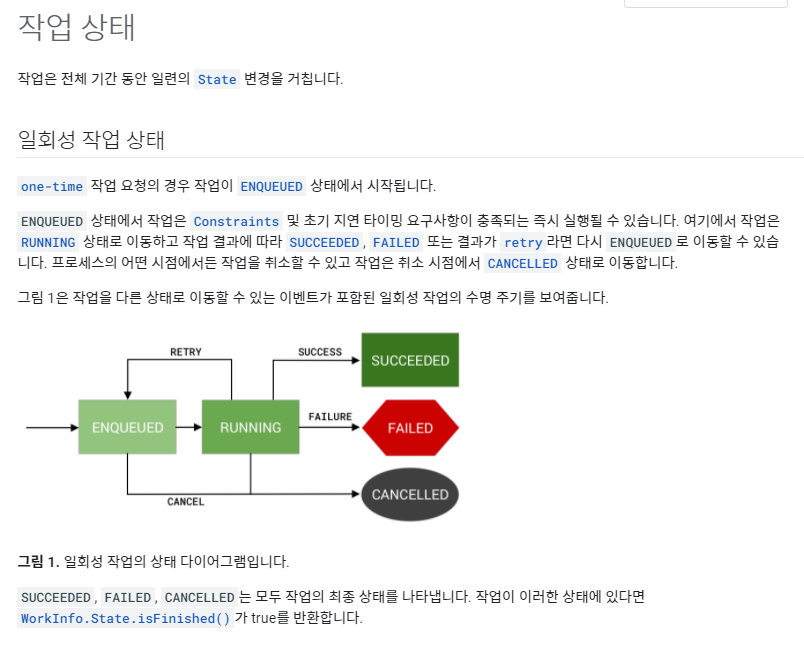 doWork()에서 반환된 Result는 WorkManager에 작업의 다음 상태를 알립니다.