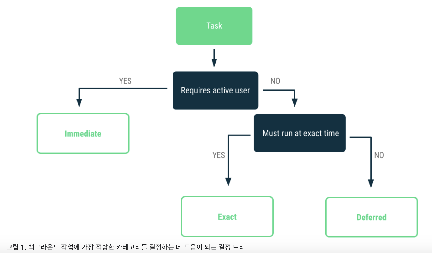 백그라운드 작업 처리시 안드로이드 개발자 문서에 적혀있듯이 다음과 같은 트리로 개발하면 됩니다.
