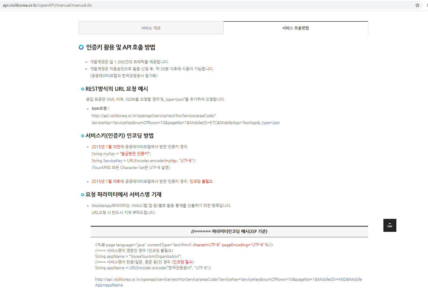 앱 프로젝트 도중 한국관광공사 API 에서 인증키입력하는 부분이 있는데 인증키를 제대로 입력했는데도 불구하고 안드로이드에서 계속 서비스키가 인증되지 않았다고 에러가 뜨는 현상이 발생했습니다.
