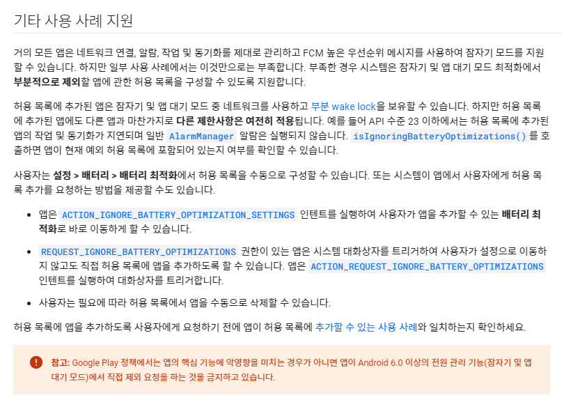 추가로 API 버전에 따라 다음 권한요청이 필요할 수 있습니다.