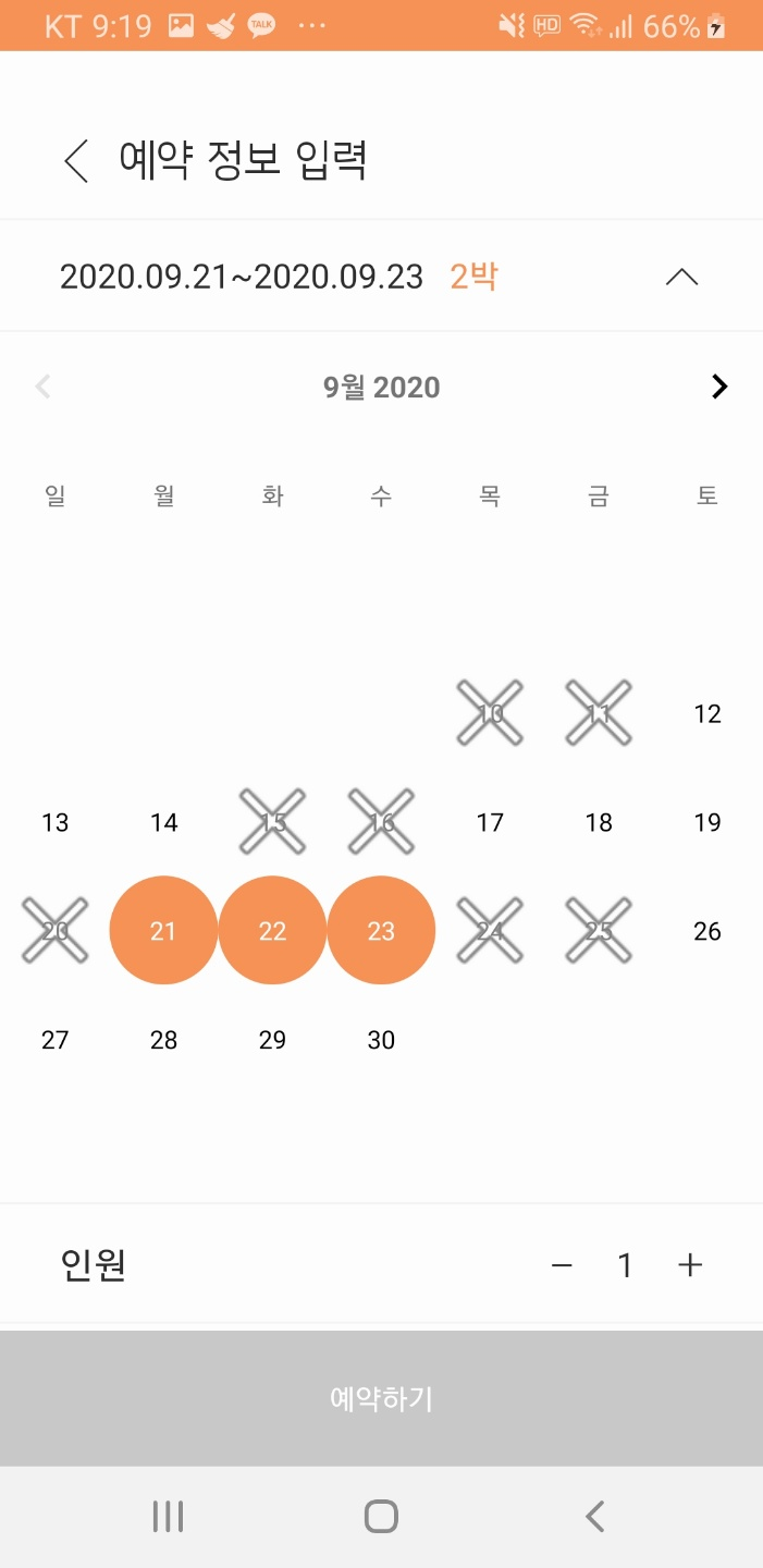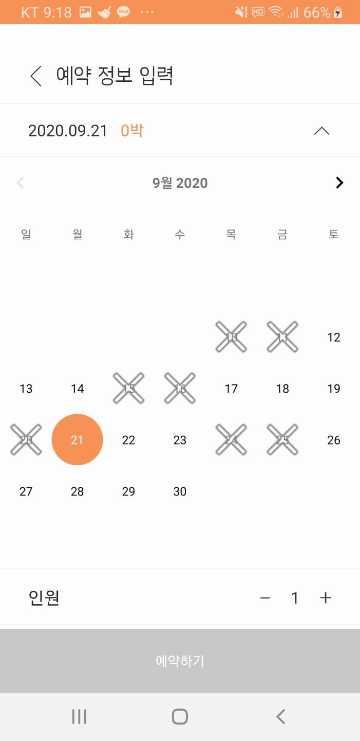 예를들면 14 ~ 15일이 예약이 차있고 setDaysDisabled 로 설정한 경우 해당 날짜 선택은 막을 수 있지만 13일을 누르고 16일 누르는 range(범위) 선택을 하는 경우는 범위에 포함되는 것을 못 막습니다. 이 점은 따로 처리를 해주어야 했습니다.