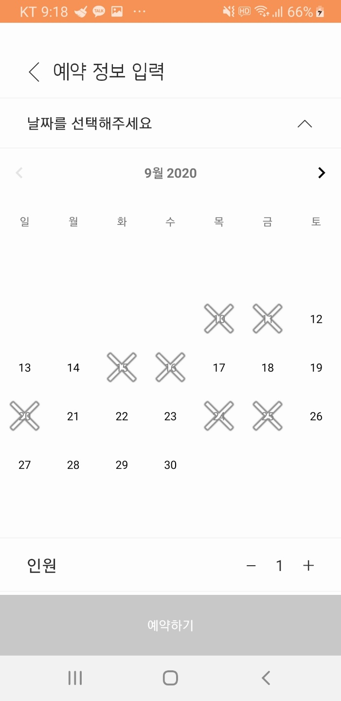 그럼 해당 날짜들이 선택을 못하게됩니다.