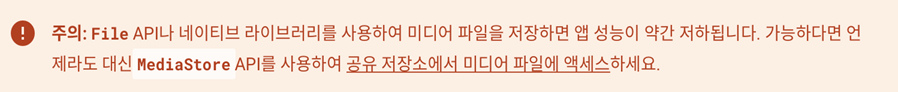 MediaStore API 외에 File API, Storage Access Framework 를 통해서도 접근 가능하나 구글에서는 다음 사진과 같이 MediaStore 사용을 권고하고 있습니다.