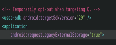 개발자들이 Scoped Storage 에 바로 대응하는데 시간이 걸리고 힘든점을 알기 떄문에 구글에서는 안드로이드 10 버전에서 requestLegacyStorage 를 true로 설정시 영어 해석 그대로 레거시 스토리지 모델을 사용할 수 있게 해줬었습니다.