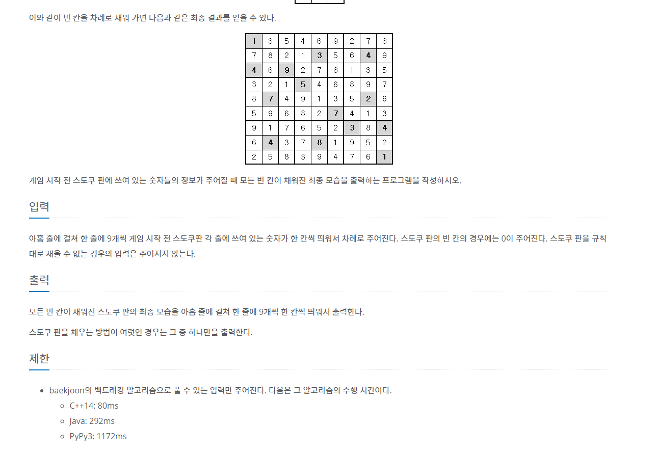 백준 백트랙킹 단계별풀기의 2580 스도쿠 문제를 풀어봤습니다.