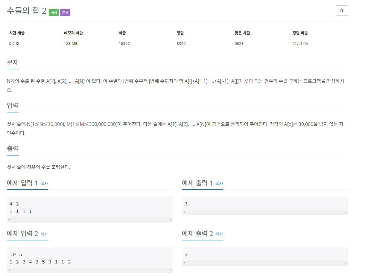투 포인터의 대표 샘플 문제로 불리는 수들의 합2를 풀어보았습니다.