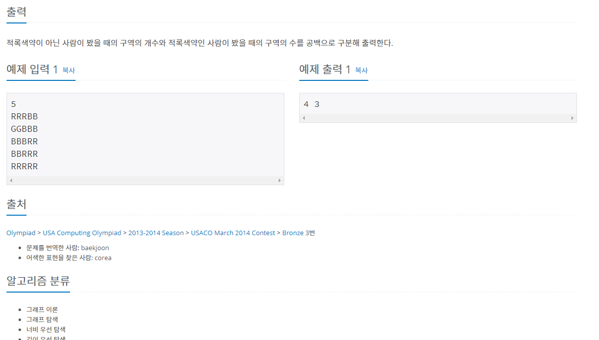 백준 10026 적록색약 문제입니다.
