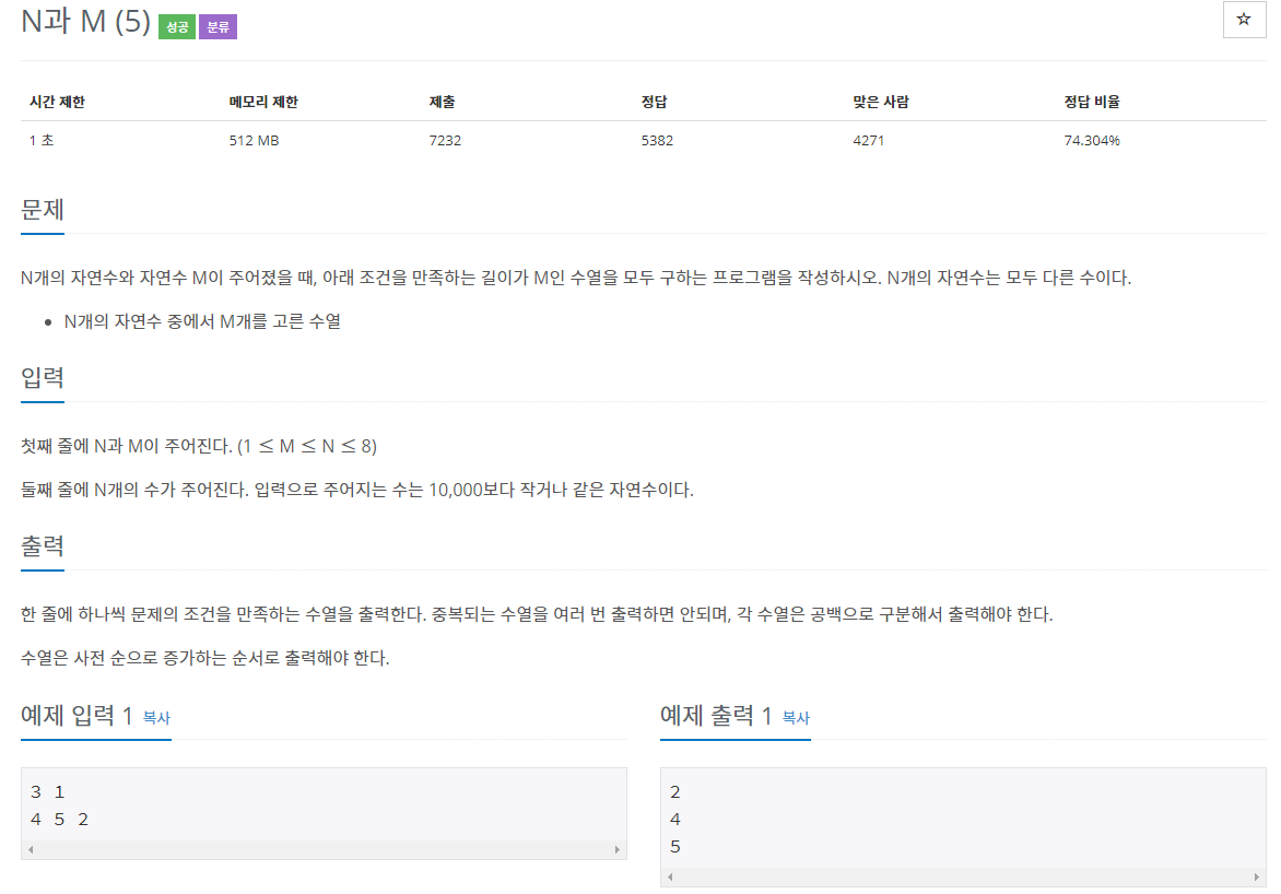 분류별풀기에서 백트랙킹을 보다 N과 M 시리즈가 더있길래 풀어봤습니다.