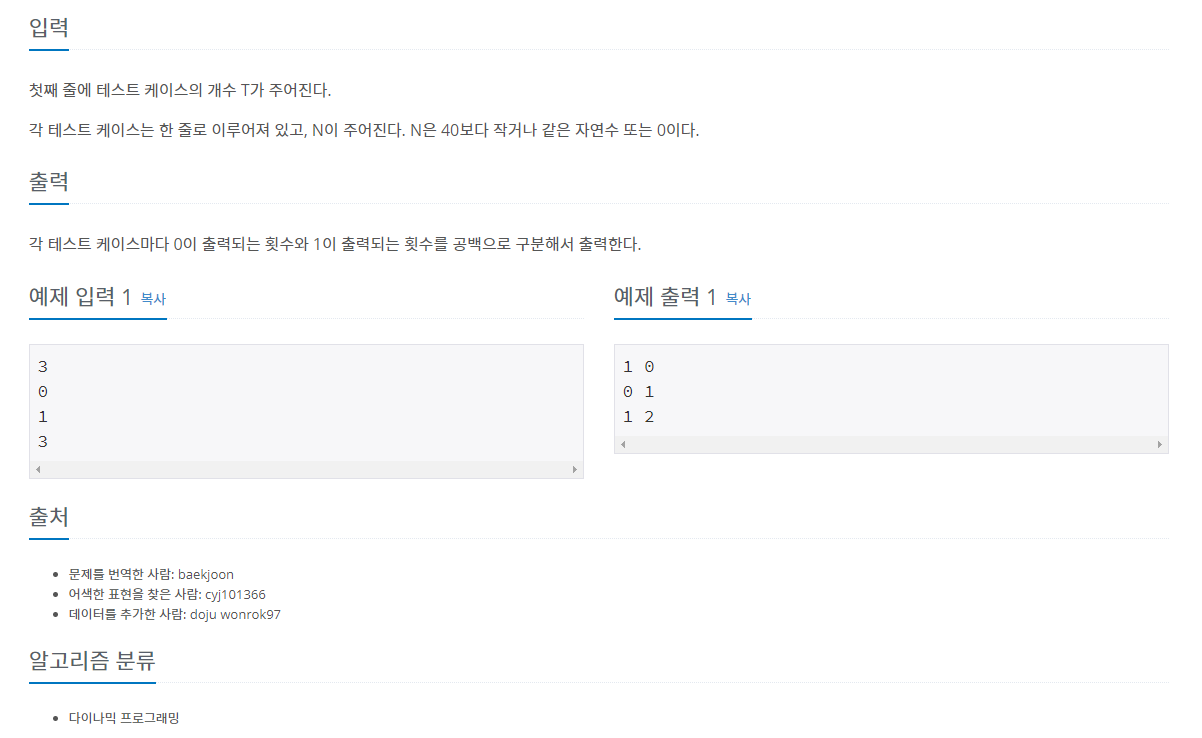 1003번: 피보나치 함수
