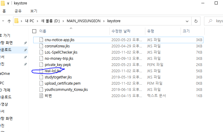 keytool -export -rfc -keystore D:\MAIN_JINSEUNGEON\keystore\real-lol.jks -alias key1 -file upload_certificate.pem