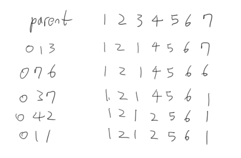 if(x < y) parent[y] = x;