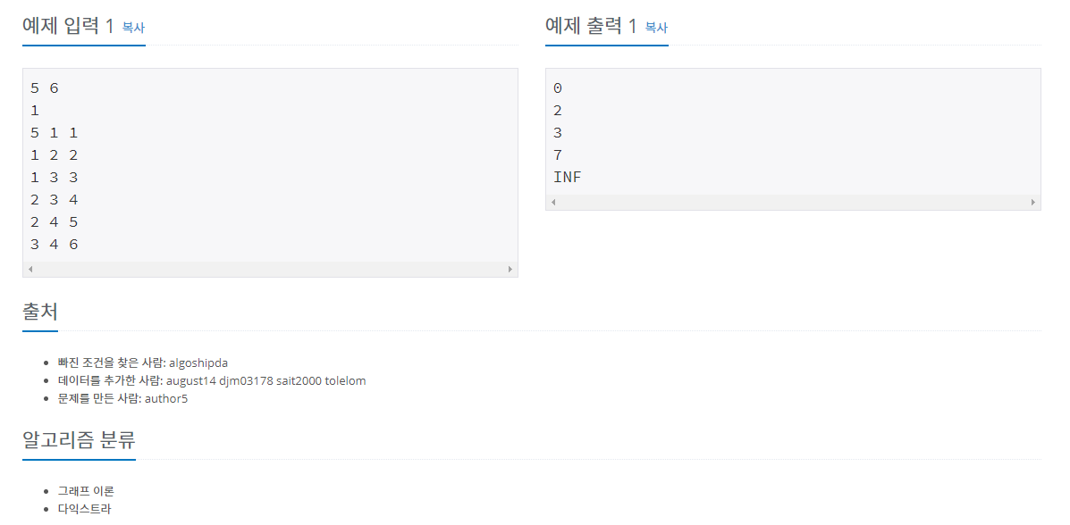 개요 이 문제는 가중치가 1이 아니고 음의 가중치도 아니기 때문에 다익스트라를 이용하여 풀이할 수 있다. 다익스트라는 음의 가중치를 가지는 경우 사용할 수 없다. 다익스트라를 구현할 때