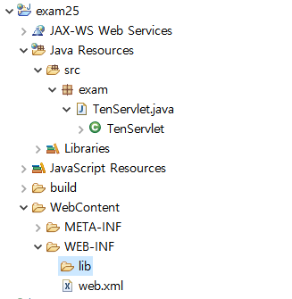 3. 해당 서블릿네임의 실제 class인 exam이라는 패키지안에있는 exam.TenServlet을 실행시켜준다.