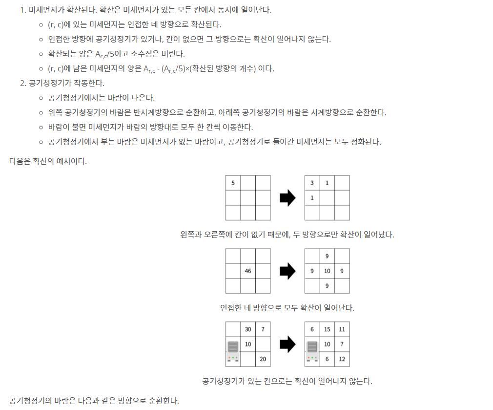 백준 17144 미세먼지 안녕! 문제를 풀어봤습니다. ㅎㅎ